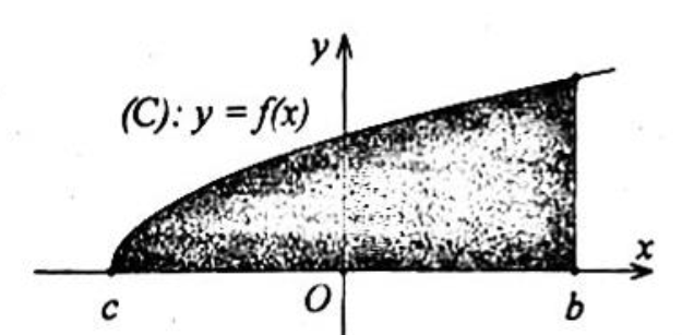 Thể tích \(V\) của khối tròn xoay tạo thành do hình phẳng giới hạn bởi đồ thị hàm số \(y = f\left( x \right)\), trục hoành và đường thẳng \(x = b\) (phần tô đậm trong hình vẽ) quay quanh trục \(Ox\) được tính theo công thức nào dưới đây?