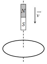 Chiều dòng điện cảm ứng trong vòng dây khi nhìn vào mặt trên trong trường hợp cho nam châm rơi thẳng đứng xuyên qua tâm vòng dây giữ cố định như hình vẽ là