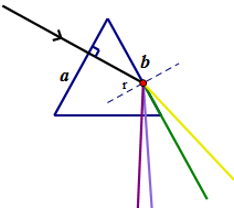 Chiếu tia sáng hẹp gồm 4 thành phần đơn sắc (đỏ, vàng, lục, tím) vuông góc với mặt bên AB của lăng kính ABC, thấy tia ló màu lục nằm sát mặt bên AC của lăng kính. Tia màu nào có phản xạ toàn phần ở mặt bên AC.