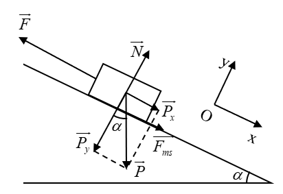 Xe khối lượng m = 200 kg, chuyển động trên dốc dài 200 m cao 10 m. Xe chuyển động thẳng đều lên dốc với vận tốc 18 km/h, công suất của động cơ là 0,75 kW. Tính độ lớn lực ma sát.