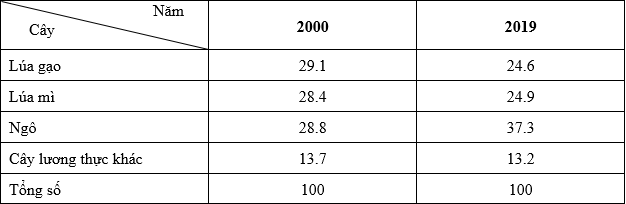 a. Tính cơ cấu sản lượng lương thực thế giới năm 2000 và năm 2019.