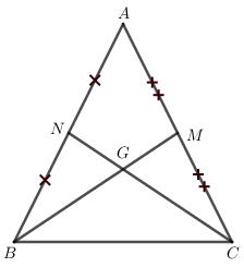 + Ba đường trung tuyến của tam giác cùng đi qua một điểm. Điểm gặp nhau của ba đường trung tuyến được gọi là trọng tâm tam giác đó.