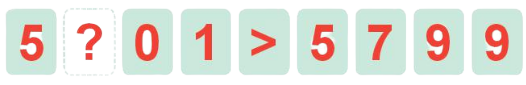 Mai có các thẻ số từ 0 đến 9. Có thể đặt thẻ số nào nào vị trí dấu ? để được phép so sánh đúng?