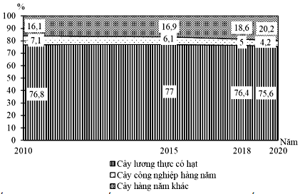 Cho biểu đồ về diện tích các loại cây hàng năm của nước ta, giai đoạn 2010 - 2020: