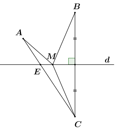 Cho 2 điểm A và B nằm trên cùng một nửa mặt phẳng có bờ là đường thẳng d. Vẽ điểm C sao cho d là trung trực của đường thẳng BC, AC cắt d tại E. Trên d lấy điểm M bất kì.