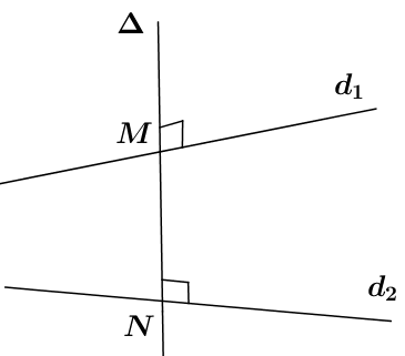 Trong không gian với hệ tọa độ Oxyz, phương trình đường thẳng vuông góc chung của hai đường