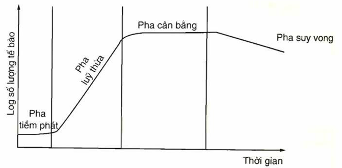 Trong nuôi cấy không liên tục, quần thể vi sinh vật sinh trưởng trải qua các pha theo thứ tự