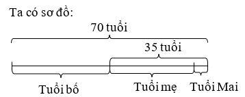 Tuổi của bố Mai, mẹ Mai và tuổi của Mai cộng lại là 70 tuổi. Mẹ và Mai có tất cả 35 tuổi.