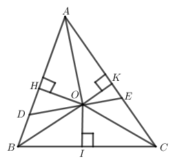 + Ba đường phân giác của một tam giác cùng đi qua một điểm. Điểm đó cách đều ba cạnh của tam giác đó.