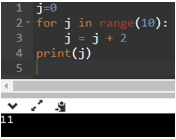 Trong câu lệnh lặp: j=0 for j in range(10): j = j + 2 print(j) Khi kết thúc câu lệnh trên, câu lệnh