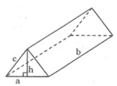 + Công thức tính thể tích lăng trụ đứng tam giác có diện tích đáy Sđ và chiều cao h là: \(V = {S_d}.h\)