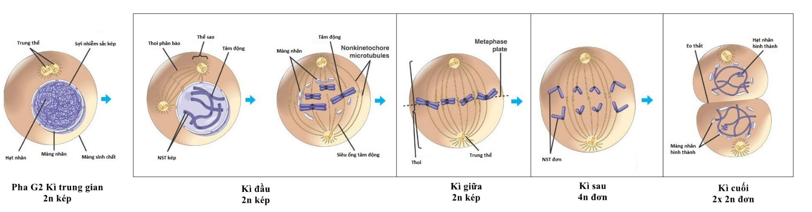 Quan sát diễn biến và số lượng NST có trong tế bào qua các kì của nguyên phân.