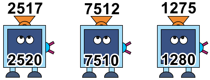 Dựa vào quy tắc làm tròn số, một chiếc máy đã lần lượt “biến” các số 2517, 7512, 1275