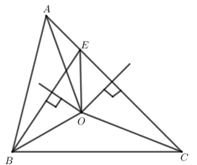 Cho \(\Delta ABC\) có AC > AB. Trên cạnh AC lấy điểm E sao cho CE = AB. Các đường trung trực của BE và AC cắt nhau tại O. Chọn câu đúng :