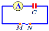 Đặt một điện áp xoay chiều có giá trị hiệu dụng không đổi, tần số f thay đổi được vào hai đầu đoạn mạch MN gồm tụ điện C mắc nối tiếp với ampe kế A (ampe kế nhiệt) như hình bên. Khi tăng tần số f thì chỉ số của ampe kế thay đổi như thế nào?