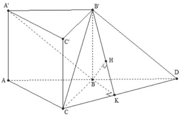 - Gọi D là điểm đối xứng A qua B. Khi đó A’B // B’D. Chứng minh \(d\left( {A'B;B'C} \right) = d\left( {B;\left( {B'CD} \right)} \right)\).
