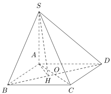 Cho hình chóp S.ABCD có \(SA \bot \left( {ABCD} \right),\) ABCD là hình chữ nhật có AB = a, AD = 2a, \(SA =