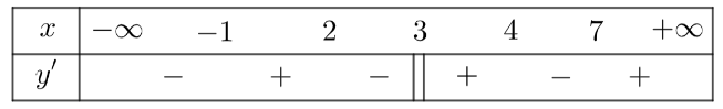 Lập bảng xét dấu của hàm số \(y = f\left( {\left| {3 - x} \right|} \right)\)