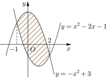 Diện tích phần hình phẳng được gạch chéo trong hình vẽ