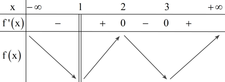 Cho hàm số y = f(x) liên tục trên \(\left( { - \infty ;1} \right) \cup \left( {1; + \infty } \right)\) có bảng biến thiên như hình vẽ