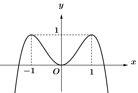 Cho hàm số \(y = - {x^4} + 2{x^2}\) có đồ thị như hình dưới đây. Tìm tất cả các giá trị