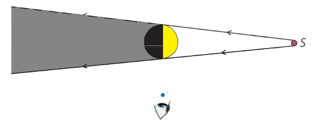 Đặt mắt quan sát vào vùng chiếu sáng của một quả bóng từ vị trí như hình vẽ. Hỏi ta sẽ thấy hình dạng quả bóng có dạng nào trong các dạng dưới đây?