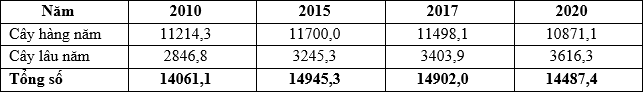 Cho bảng số liệu: DIỆN TÍCH CÁC LOẠI CÂY TRỒNG PHÂN THEO NHÓM CÂY CỦA NƯỚC TA GIAI ĐOẠN 2010
