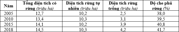 DIỆN TÍCH RỪNG VÀ ĐỘ CHE PHỦ RỪNG CỦA NƯỚC TA, GIAI ĐOẠN 2000 – 2018