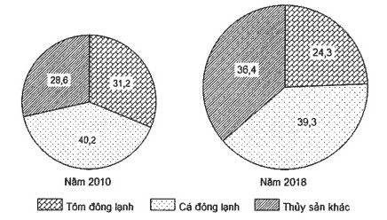 Cho biểu đồ về : Giá trị xuất khẩu hàng thủy sản của nước ta, năm 2010 và 2018 (%)