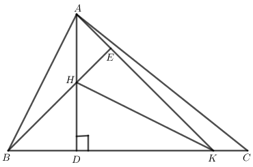 Cho \(\Delta ABC\) nhọn, đường cao \(AD\). Trên tia \(DA\) lấy điểm \(H\) sao cho \(DH = DB\). Trên tia