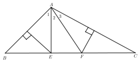 Cho \(\Delta ABC\) có \(\angle A = 110^\circ \). Các đường trung trực của \(AB,AC\) cắt cạnh \(BC\) lần lượt tại \(E,F\). Tính số đo \(\angle EAF\)?