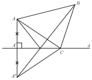 Chu vi \(\Delta ABC\) nhỏ nhất khi và chỉ khi tổng \(CA'' + CB\) nhỏ nhất