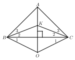 Cho \(\Delta ABC\) có \(K\) là giao điểm của các đường phân giác, \(O\) là giao điểm của các