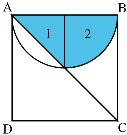 Cho hình vuông ABCD có độ dài cạnh là 2cm và nửa hình tròn đường kính AB (như hình vẽ). Tính diện tích phần được tô màu.