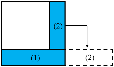Cắt ghép phần tô màu để được hình chữ nhật, khi đó chiều dài hình chữ nhật bằng tổng của hai cạnh hình vuông.