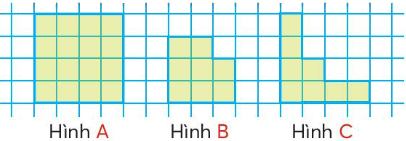 Mỗi hình A, B, C gồm mấy ô vuông?