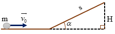 Một viên bi khối lượng m chuyển động ngang không ma sát với vận tốc v0 rồi đi lên mặt