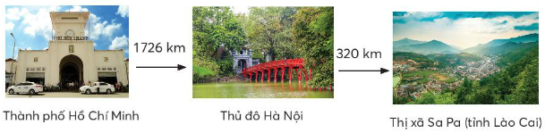 Quãng đường từ thành phố Hồ Chí Minh đến thủ đô Hà Nội dài 1 726 km, từ thủ đô Hà Nội đến thị xã Sa Pa (Lào Cai) dài 320 km. Hỏi quãng đường từ thành phố Hồ Chí Minh đến thị xã Sa Pa đi qua thủ đô Hà Nội dài bao nhiêu ki-lô-mét?