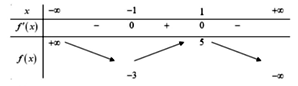 Cho hàm số \(y = f\left( x \right)\) có đạo hàm \(f'\left( x \right)\) trên \(\mathbb{R}\) và có bảng