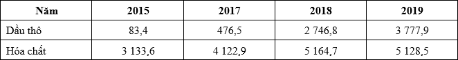 Cho bảng số liệu:GIÁ TRỊ MỘT SỐ MẶT HÀNG NHẬP KHẨU CỦA NƯỚC TA GIAI ĐOẠN 2015 - 2019(Đơn