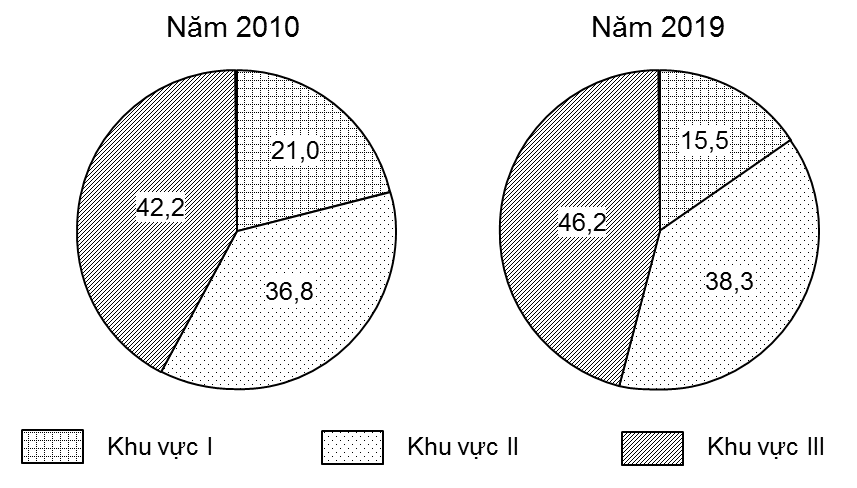 Cho biểu đồ GDP phân theo khu vực kinh tế nước ta năm 2010 và 2019:Biểu đồ thể hiện nội dung