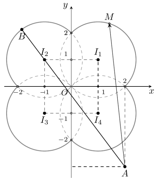 Cho số phức z thỏa mãn \(\left| {z + \overline z } \right| + \left| {z - \overline z } \right| = \left| {{z^2}} \right|\). Tìm giá trị lớn nhất của \(\left| {z - 2 + 3i} \right|\).