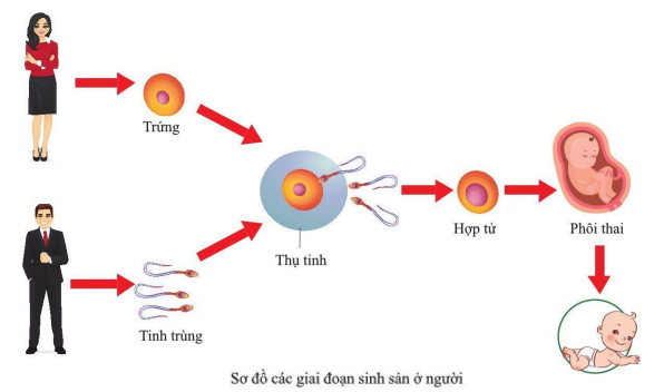 Trong quá trình sinh sản hữu tính, sự kết hợp giữa giao tử đực và giao tử cái tạo thành