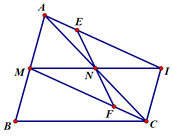 Cho tam giác ABC. Gọi M, N thứ tự là trung điểm của AB và AC, trên tia đối của tia NM lấy