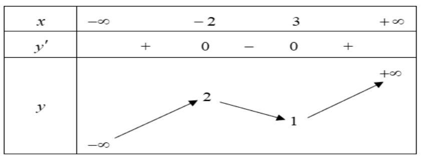 Cho hàm số y = f(x) liên tục trên \(\mathbb{R}\) và có bảng biến thiên dưới đây