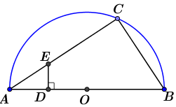 Trên nửa đường tròn (O) đường kính AB lấy điểm C sao cho AC > BC (C khác A và B). Gọi D là trung điểm của đoạn thẳng OA. Đường thẳng qua D và vuông góc với AC tại E. Chứng minh rằng: