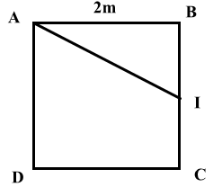 Cho hình vuông ABCD có cạnh bằng 2m. Gọi I là trung điểm của cạnh BC. Diện tích của tứ giác