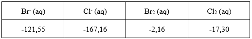 2Br- (aq) + Cl2 (aq) ⟶ 2Cl- (aq) + Br2 (aq)