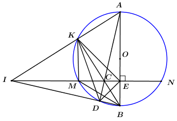 3. Gọi I là giao điểm của hai đường thẳng AK và MN; D là giao điểm của hai đường thẳng AC và BI . Chứng minh điểm C cách đều ba cạnh của tam giác DEK.