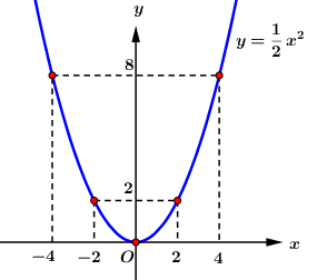 1) Vẽ đồ thị hàm số \(\left( P \right):\,\,y = \dfrac{1}{2}{x^2}\) 2) Tìm tọa độ giao điểm của